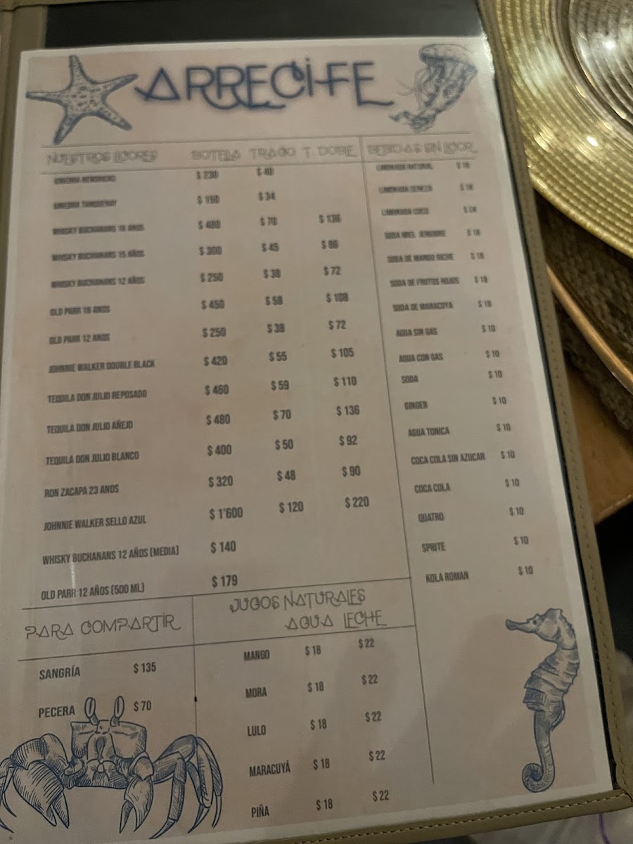 For dessert, the Torta de Chocolate Y Creo Con Semillas de Amapola Espectacular is a chocolate lover’s dream, complemented by the unique poppy seeds that add a delightful texture. Among the main courses, the Filete Con Frutos del Mar is an excellent choice, with its tender fillet paired with a medley of fresh seafood, creating a symphony of flavors. Another recommended dish is the Cóctel Mr Sea, a refreshing seafood cocktail that’s perfect for starting the meal with a light yet flavorful note.